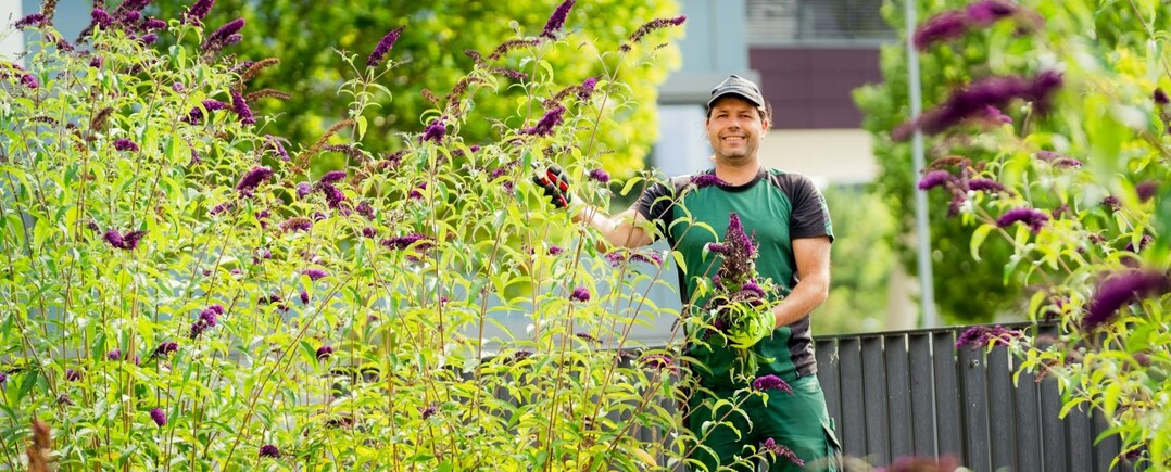 • die Gestaltung und der Erhalt von Grünanlagen inklusive Schnittarbeiten, Bewässerung und Neubepflanzungen sowie die Pflege von Dachbegrünungen, Lichthöfen, See- und Brunnenanlagen